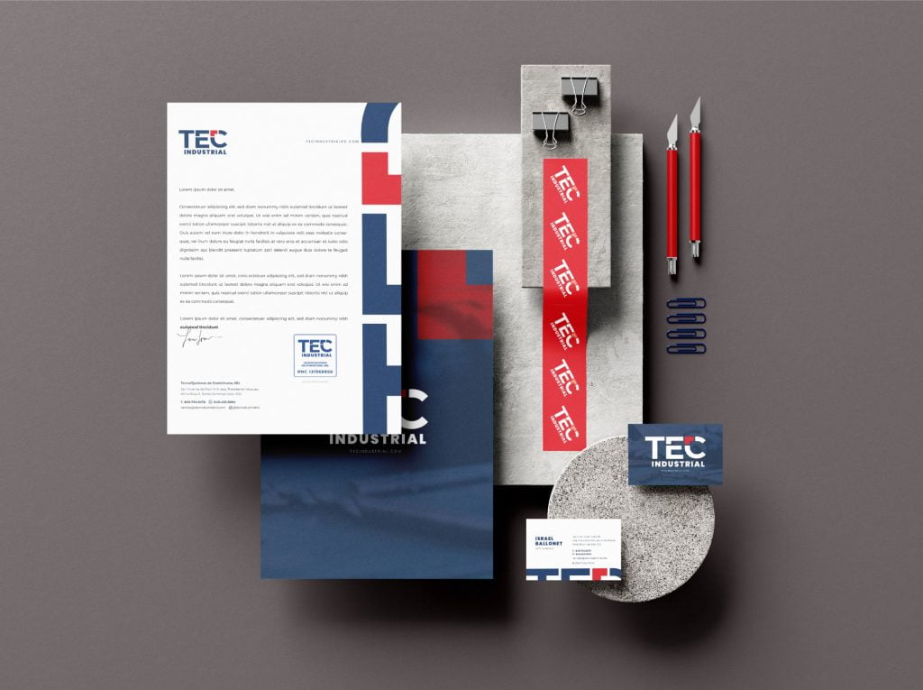 Objective: To build the corporate visual identity for TEC Industrial, the exclusive distributor of industrial products and tools in the Dominican Republic. The main challenge was to create a simple structure that remained connected to the parent brand Tecnofijaciones CR, while projecting a modern image that is easy to use across various platforms.